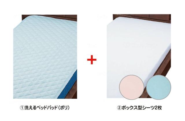 洗えるベッドパット(ポリ)×1枚、ボックス型シーツ×2枚