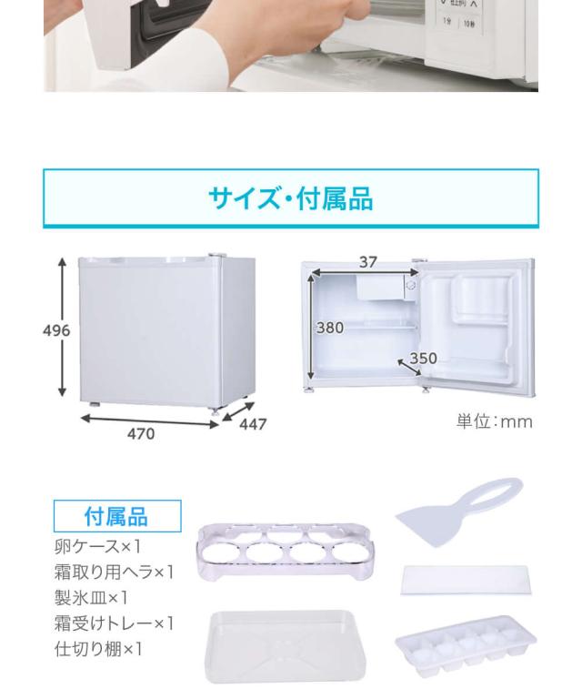* 付属品: 製氷皿、卵ケース、霜取り用ヘラ、仕切り棚、霜受けトレー、取扱説明書(保証書付き)