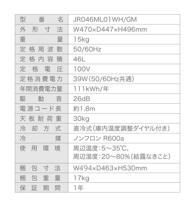 * 定格内容積: 46L