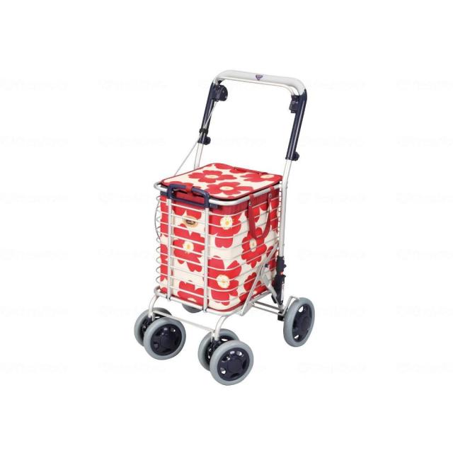 ユーバ産業 アルミワイヤーカート ブレーキ付き 花柄赤 高齢者向け ショッピングカート A-0245H