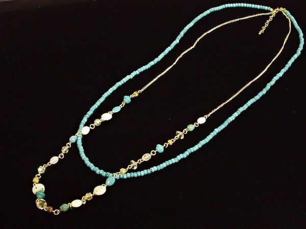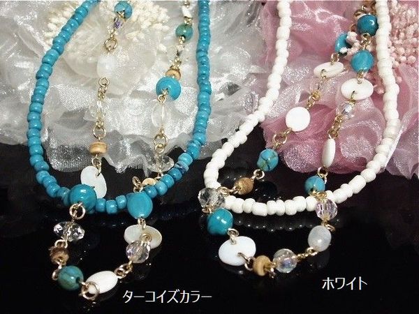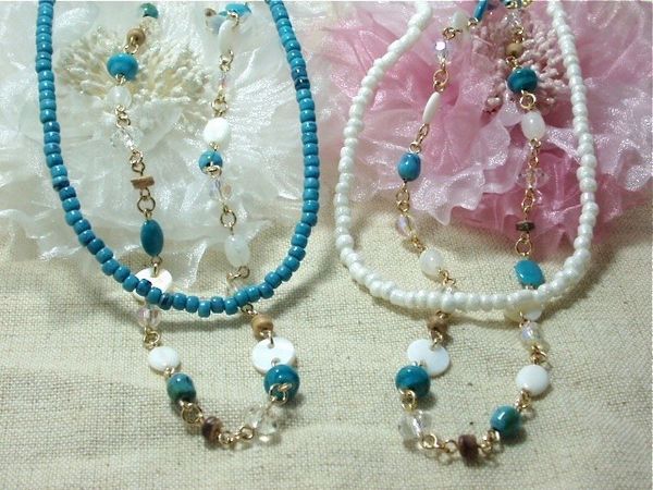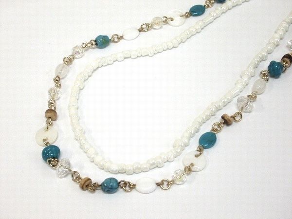 | これからの季節に活躍してくれそうなターコイズカラー・ホワイトカラーのロングネックレスです♪ |