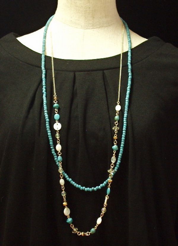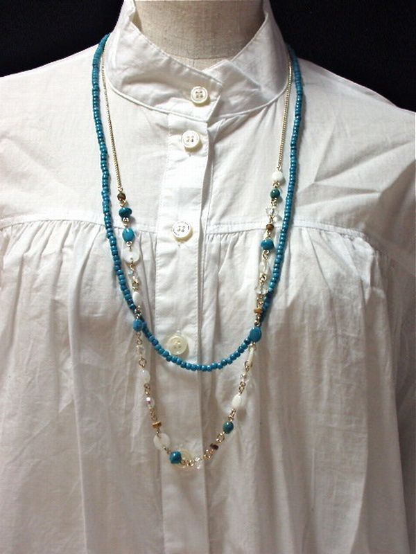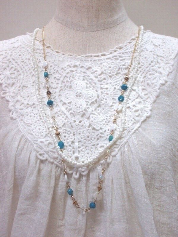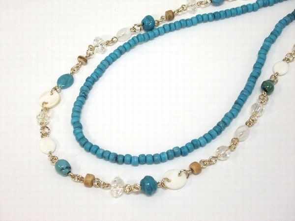 ネックレス ペンダント レディースアクセサリー アクセサリー ファッション ターコイズ ホワイトカラー 2連 ロングネックレス 【送料無料】