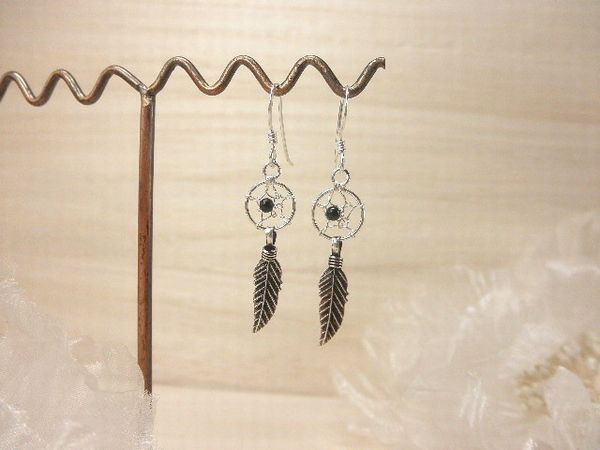 | 悪夢は網目に引っかかって消え、良い夢だけが網目をすり抜けて 眠っている人に伝わるとされているドリームキャッチャーをモチーフにした シルバーピアスです。 ペアでの価格です。 |