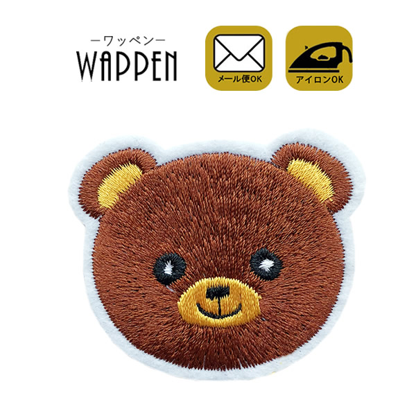 ワッペン 刺繍 アイロン接着 縦4cm×横4.8cm くま クマ 動物 アップリケ アイロンワッペン 手芸 かわいい WAPPEN母の日 プレゼント ギフト
