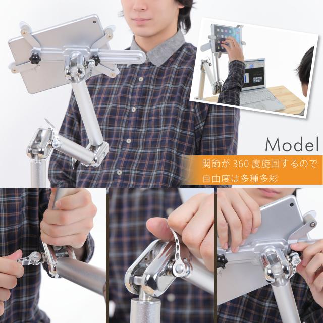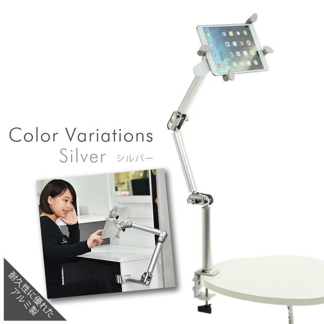 タブレット&スマホ用アルミ合金・鉄アームスタンド、ガッチリ固定シリーズ 【8代目、アルミ合金・鉄 Version】(シルバー)です。