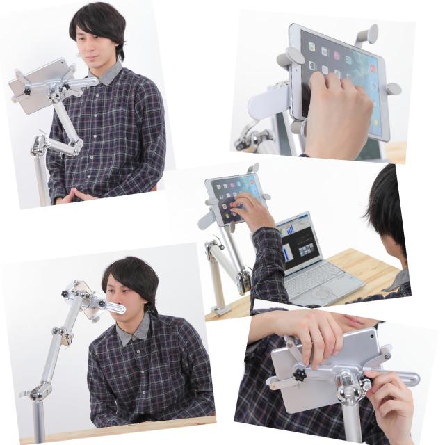 タブレットやスマホを固定するアームスタンドです。