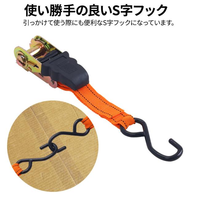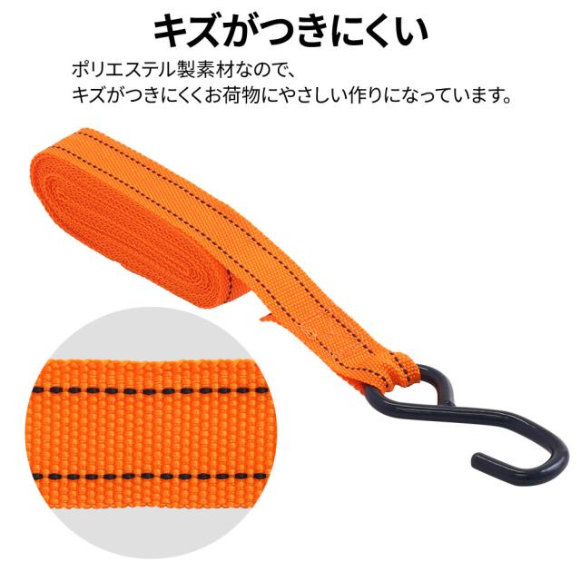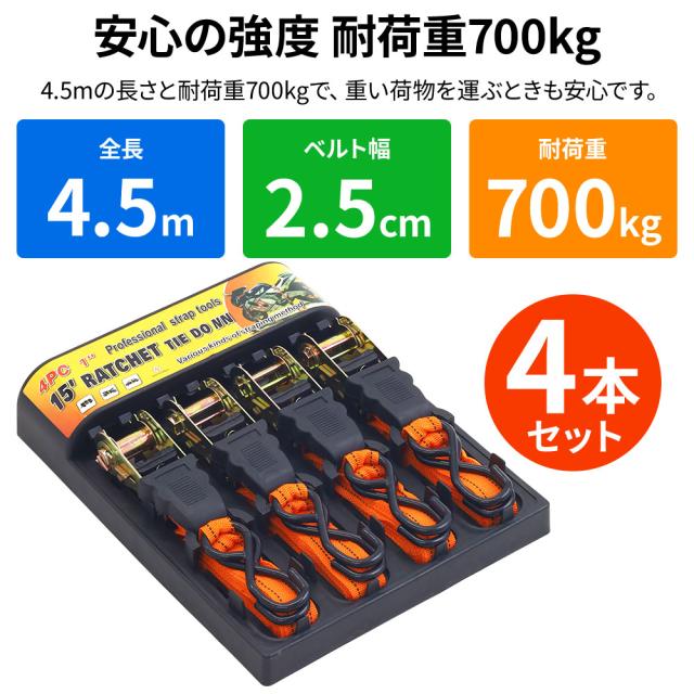 ラチェット式 ラッシングベルト 全長4.5m ベルト幅2.5cm 4本セット