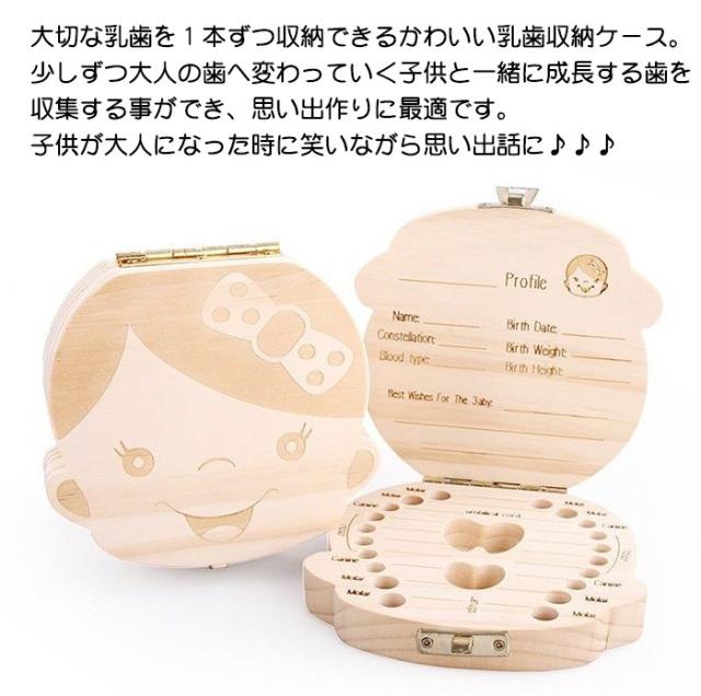 大切な乳歯を1本ずつ収納できるかわいい乳歯収納ケース。 少しずつ大人の歯へ変わっていく子供と一緒に成長する歯を 収集する事ができ、思い出作りに最適です。 子供が大人になった時に笑いながら思い出話に♪♪♪ 【商品詳細】 ■画像の商品の印字は英文ですが、実際の商品は日本語で印字されております。 ■サイズ:12.5cm×11.5cm×2.7cm ■木製 ■セット内容:乳歯ケース×1※入荷によりリボンなどのデザインが若干変わる場合がございますがご了承下さい。【検索ワード】トゥースアルバム 乳歯入れ アルバム 乳歯 ケース アルバム型 女の子 男の子 子育て ママ ガール |
