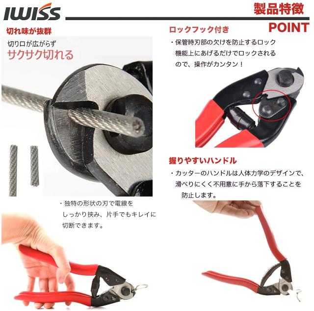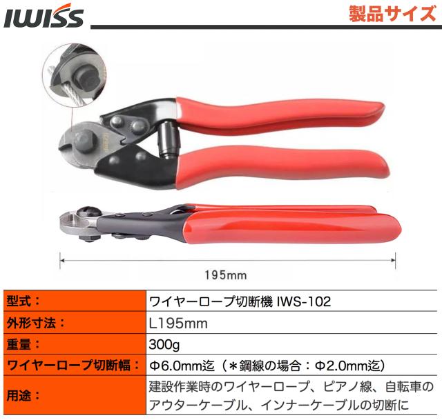 IWISS ハンディ ワイヤーケーブル&スポークカッター 外径Φ6mm迄(ワイヤーロープ Φ4mm迄) IWS-102