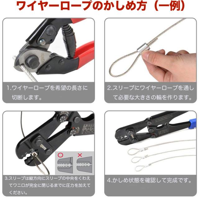直径が4mm以上のワイヤーロープは2回以上のかしめを推奨いたします。