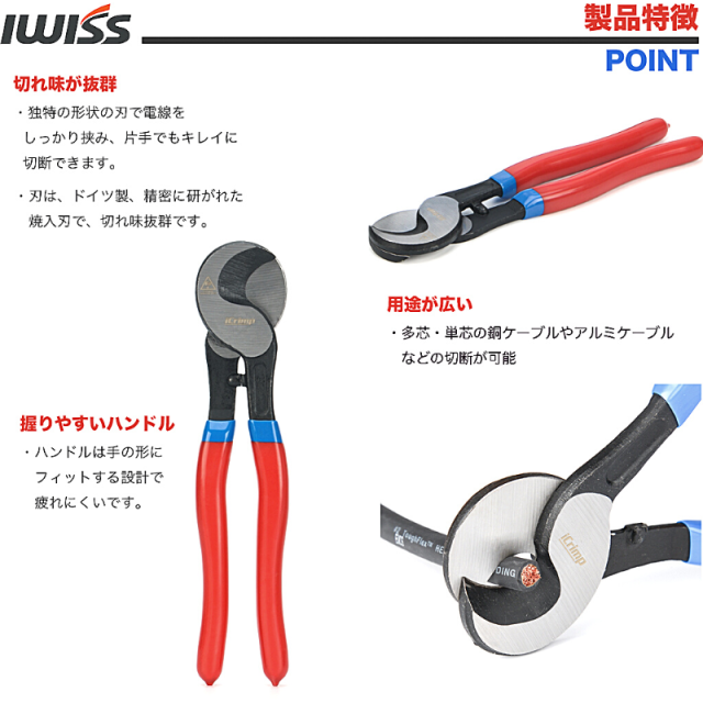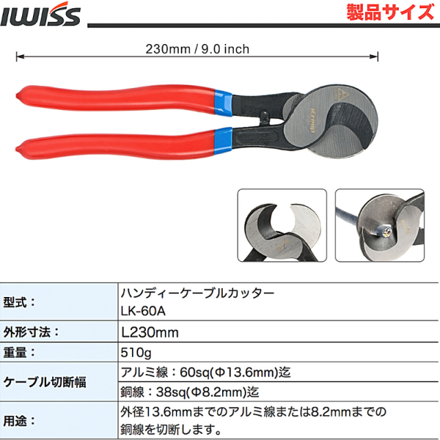 IWISS ハンディー ケーブルカッター アルミ線・銅線専用 電線サイズ60sqまで LK-60A