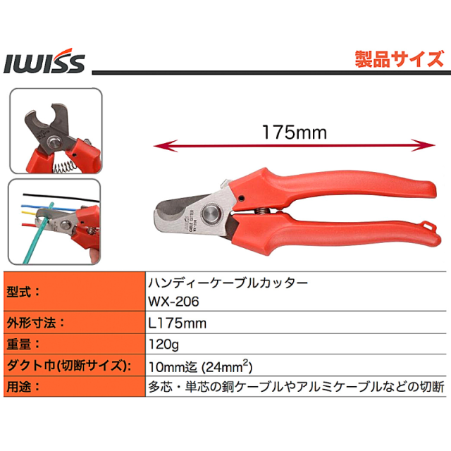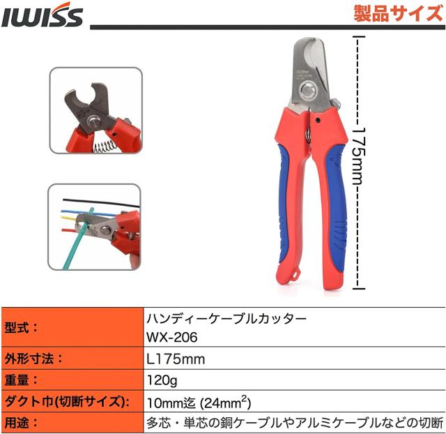 1000円 ぽっきり ケーブルカッター ケーブル カッター アイウィス IWISS 送料無料 ハンディーケーブルカッター ハンディ— 外径10mm 電線サイズ24sqまで WX-206