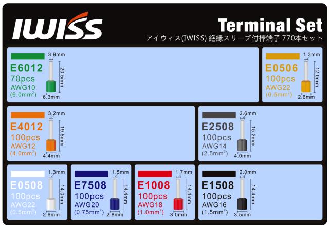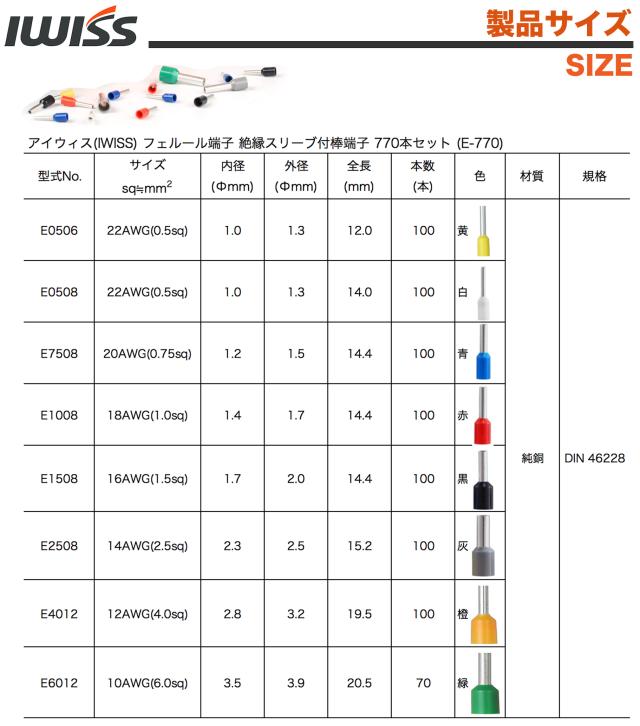 アイウィス IWISS フェルール端子 絶縁スリーブ付棒端子 純銅製 端子 770本セット フェルール 端子セット お得 送料無料 DIY 作業 修理 E-770