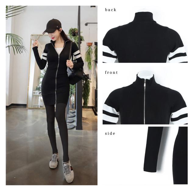 ジャージ ワンピース 長袖 レディース 2本線 トレーナー スウェット トップス おしゃれ スポーティ EasyChange