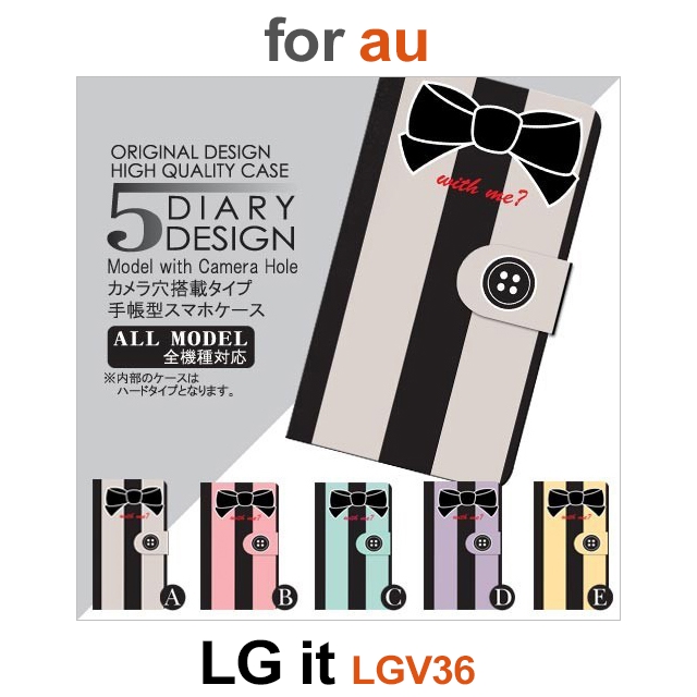 LGV36 ケース カバー スマホ 手帳型 au LG it リボン ストライプ dc-037