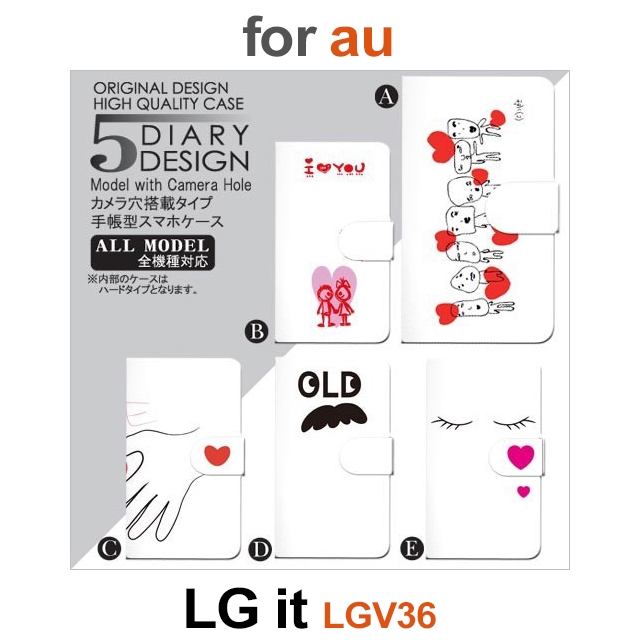LGV36 ケース カバー スマホ 手帳型 au LG it ハート かわいい dc-058