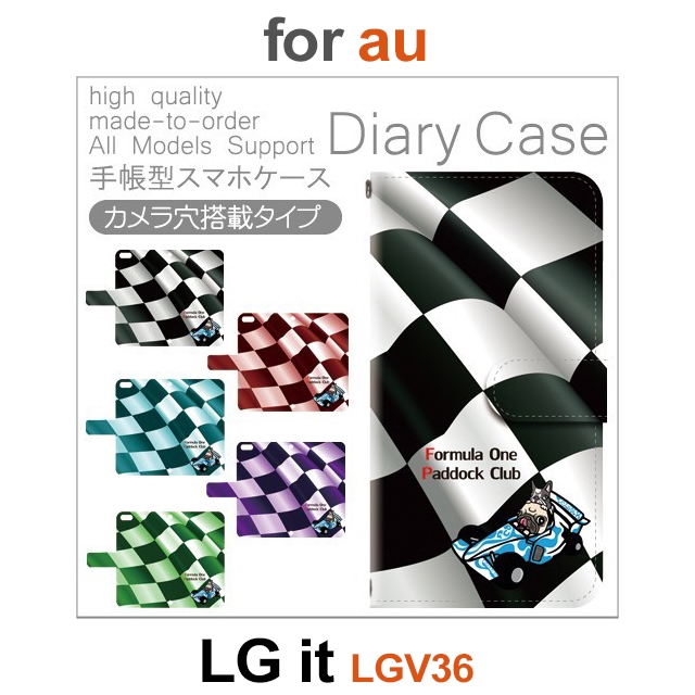 LGV36 ケース カバー スマホ 手帳型 au LG it レース 車 犬 dc-180