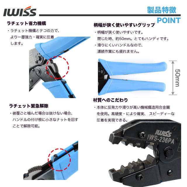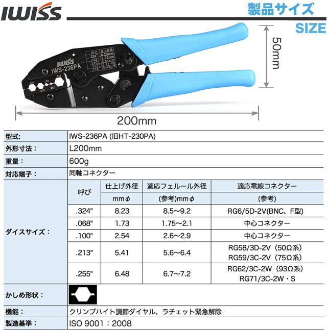 IWISS 同軸コネクター BNC F型コネクタ 圧着工具 ラチェット式 IWS-236PA