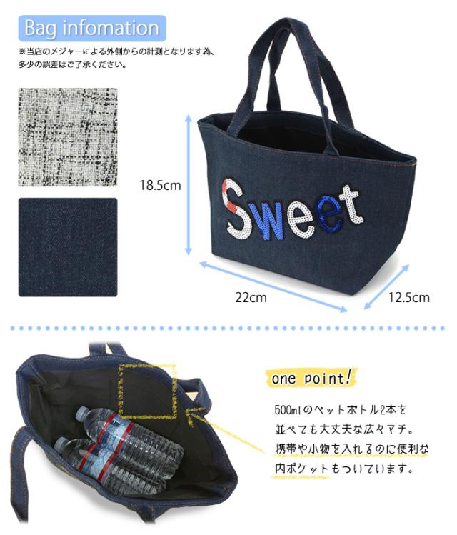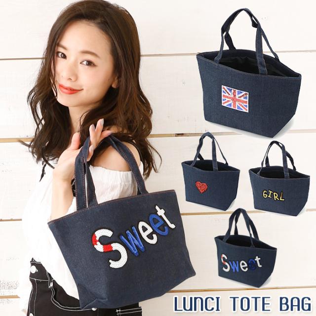 ミニトート ランチバッグ レディース ランチトート Lulu&berry ワッペン付 ランチトートバッグ (ar-DELDNm)【メール便送料無料】 ミニトートバッグ ミニバッグ 手提げ かばん サブバッグ ミニ 小さめ コンパクト シンプル おしゃれ かわいい デニム ツイード トート バッグ