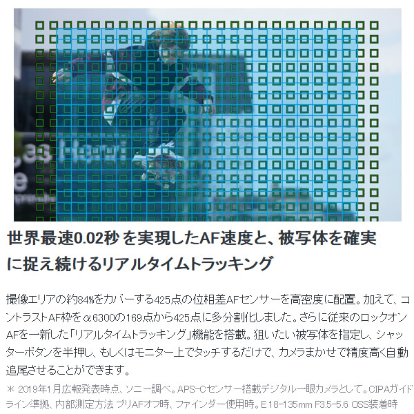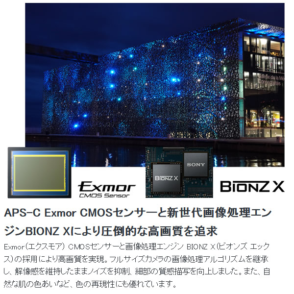 | 撮像素子 | APS-Cサイズ(23.5×15.6mm)、Exmor CMOSセンサー |