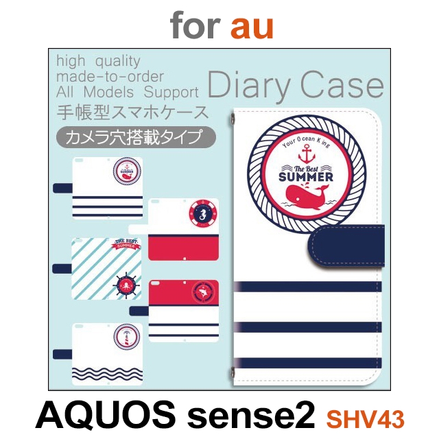 SHV43 ケース カバー スマホ 手帳型 au AQUOS sense2 海 マリン dc-502