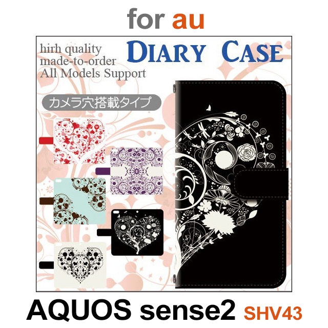 SHV43 ケース カバー スマホ 手帳型 au AQUOS sense2 ハート dc-179