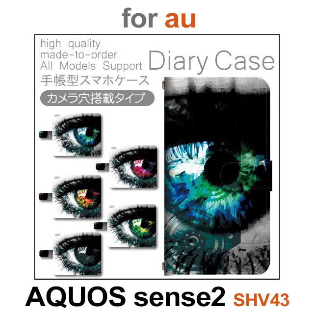 SHV43 ケース カバー スマホ 手帳型 au AQUOS sense2 目 dc-419