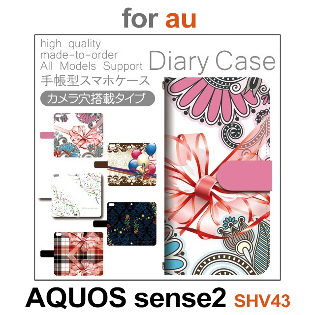 SHV43 ケース カバー スマホ 手帳型 au AQUOS sense2 リボン プレゼント dc-425