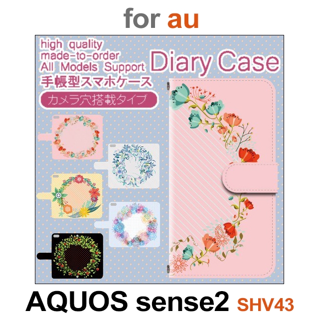 SHV43 ケース カバー スマホ 手帳型 au AQUOS sense2 花 植物 dc-624