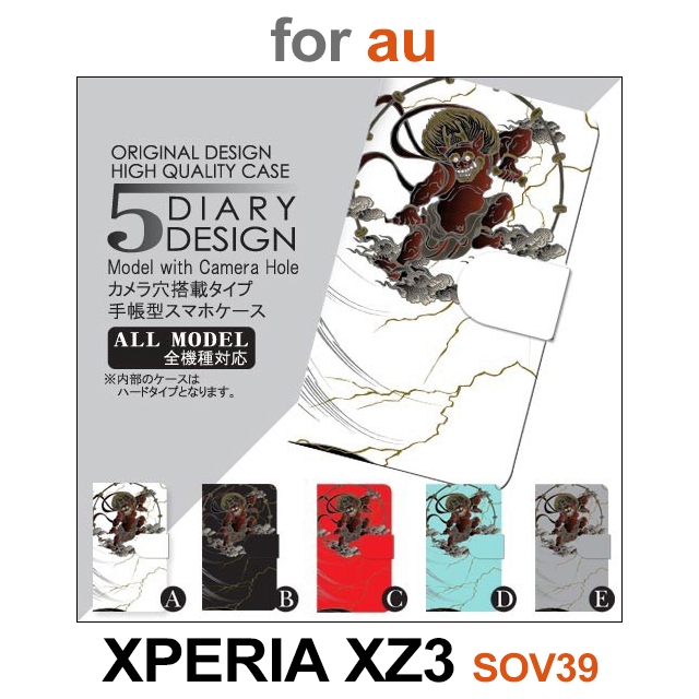SOV39 ケース カバー スマホ 手帳型 au XPERIA XZ3 和風 風神 dc-032