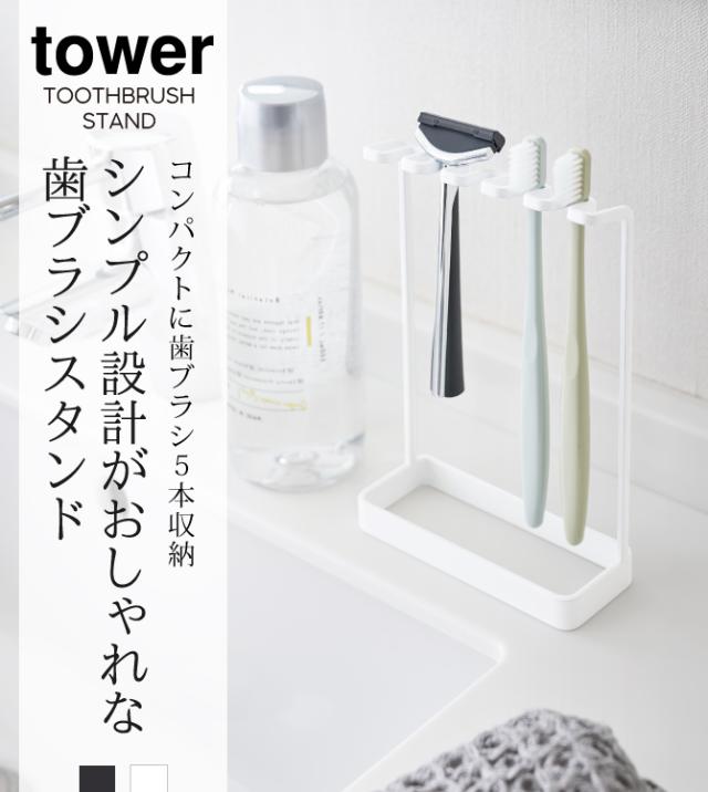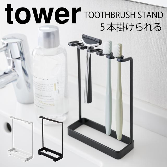 歯ブラシスタンド 歯ブラシホルダー おしゃれ 髭剃り T字 5連 タワー tower シンプル ホワイト ブラック 山崎実業 yamazaki