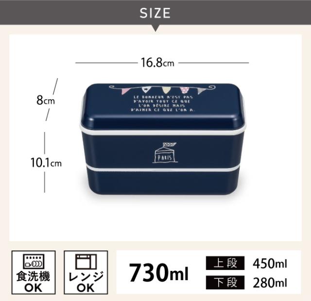 ガーランド絵柄のフレンチスタイルの可愛いランチボックスです。2段型ランチボックスで容量も730mlとしっかり食べられます。
