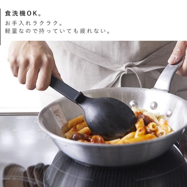 シリコーン製なので軽量。ステンレス製のようにフライパンを傷つける心配がなく、プラスチック製のように熱に弱く溶けてしまうというデメリットがありません。食洗機にも使えます。