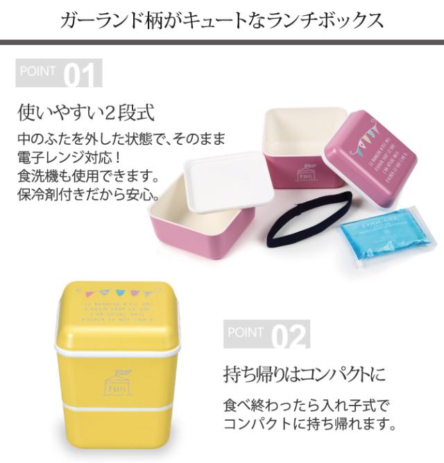 お弁当箱 女子 レディース 女性用 2段 ランチボックス レンジ対応 食洗機対応 PARIS ドームスクエアネストランチ ガーランド プラスチック製 樹脂製 日本製 BPAフリー