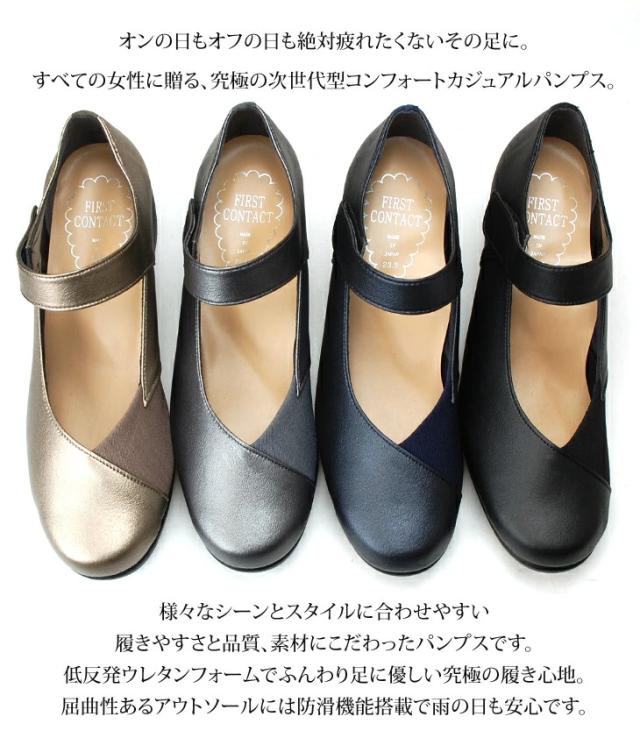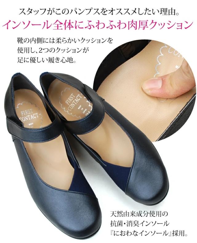 ファーストコンタクト パンプス 歩きやすい 痛くない 疲れない ストラップ ウェッジソール 外反母趾 脱げない 可愛い 靴 日本製