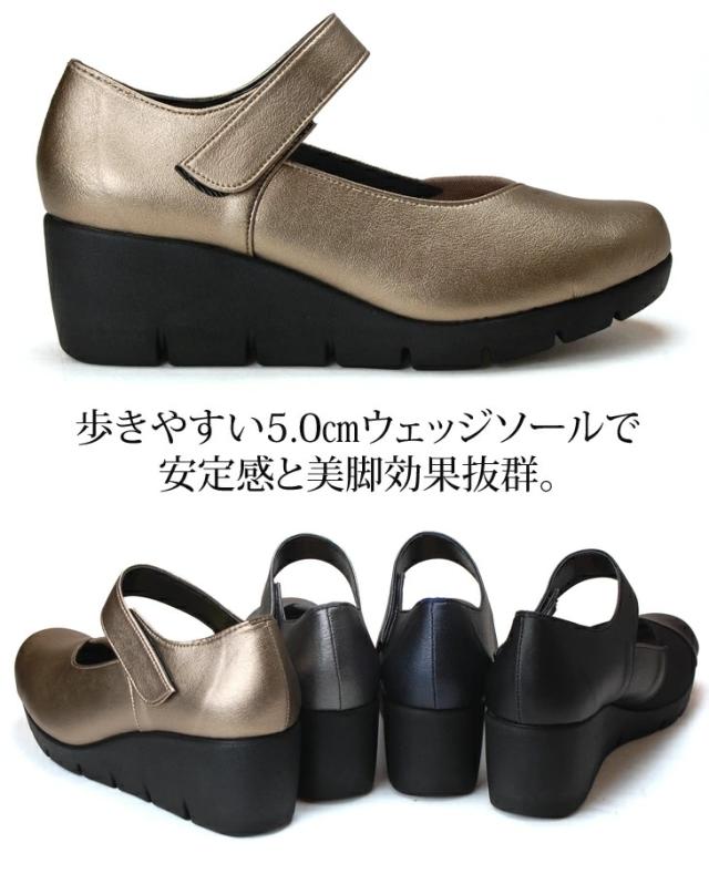 歩きやすい5.0cmウェッジソールで安定感と美脚効果抜群。