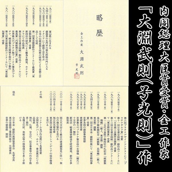 内閣総理大臣賞受賞・金工作家「大淵光則」氏がひとつひとつ手作りにて製作致します。