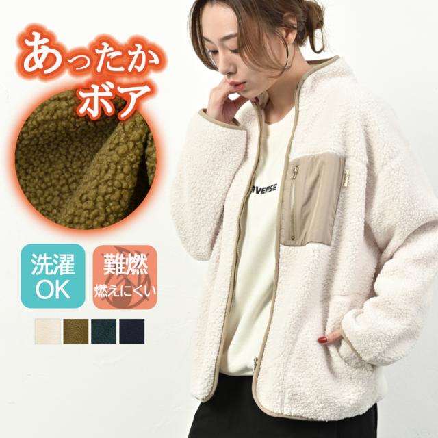・裏起毛で 軽くて 暖かい シープボアの フリースアウター で大人可愛い シンプル ベーシック な カジュアル スタイルを楽しめます