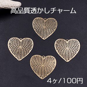 高品質透かしチャーム ハート 26×26mm ゴールド【4ヶ】