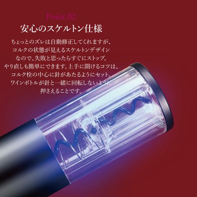 スケルトンデザインでコルクの状態が見えるので、失敗と思ったらストップしてやり直しが簡単。