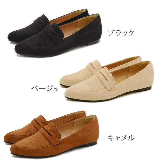 ローファー レディース パンプス 痛くない 歩きやすい ローヒール 大きいサイズ 黒 ポインテッドトゥ オペラシューズ フラットシューズ スエード ぺたんこ 靴 春新作