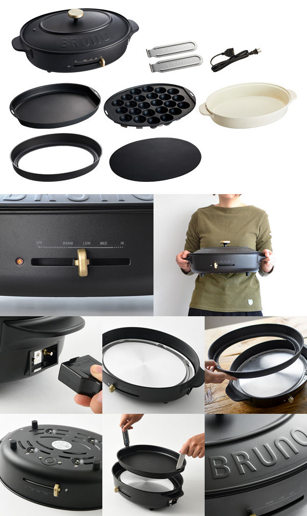 ■付属品…平面プレート×1、たこ焼きプレート×1、深鍋×1、プレート取り替え用ハンドル×2、シリコンマット×1、マグネット式脱着電源コード×1
