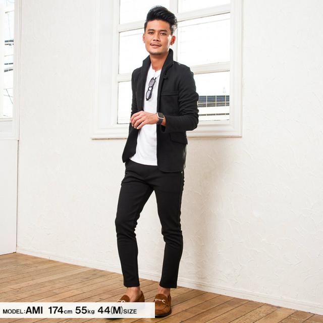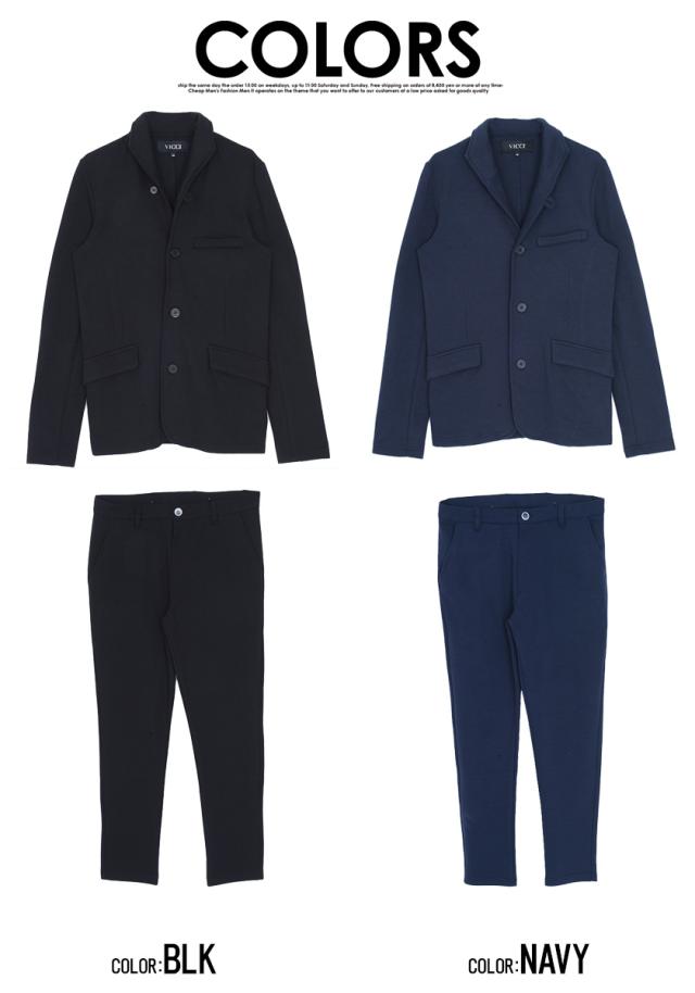 アウター テーラードジャケット アンクルパンツ メンズ "Vicci【ビッチ】カルゼイタリアンカラージャケットセットアップ/全4色" 即日発送 スラックス カジュアルスーツ スリム 細身 黒 紺 BITTER系 ビター系