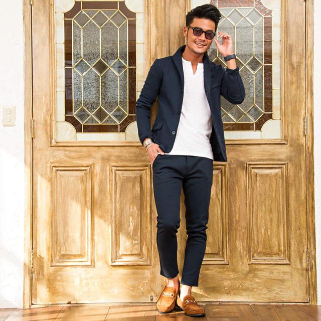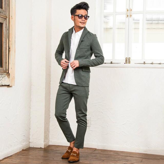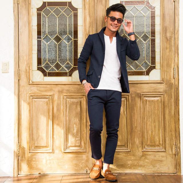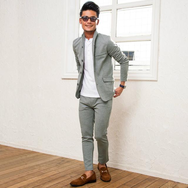 イタリアンカラーを採用し、襟を立たせることによって首元にボリュームが出て男らしい印象を与えスタイリッシュに魅せてくれます。