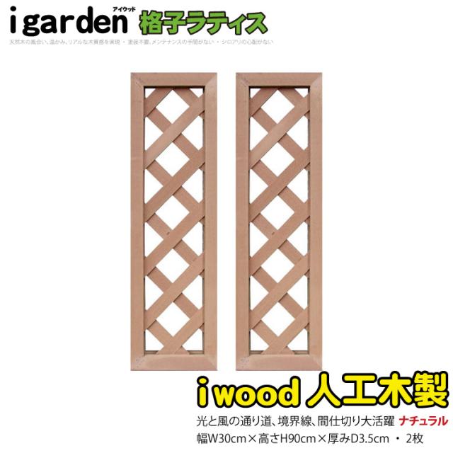 アイウッド 格子ラティス 人工木製 H90cmxW30cm 2枚セット ナチュラル 樹脂製 腐らない 色あせない 目隠しフェンス 日除け 外構資材 10年以上の実績