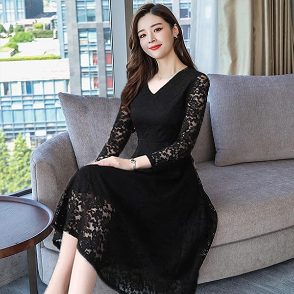 【サイズ有M〜5XL】パーティードレス 大きいサイズ 結婚式 ワンピース 大きいサイズ フォーマル ワンピース 大きいサイズ 総レース ワンピース ブラック フレア Aライン ドレス フォーマル 50代 秋 冬 お呼ばれ 他と被らない レースワンピda506s1s1g5