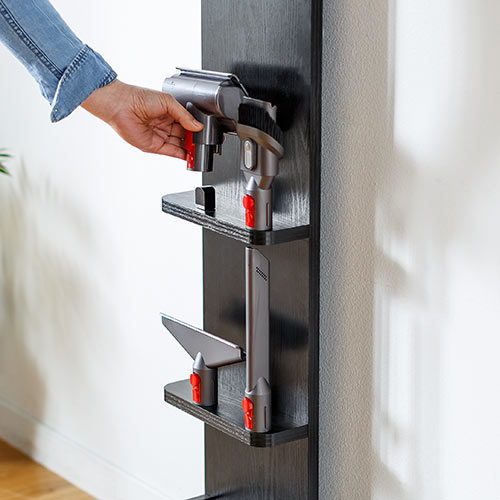 ダイソン製スティッククリーナーを設置する際は純正ブラケットを利用します。クリーナーの固定と充電がワンタッチで行えます。
