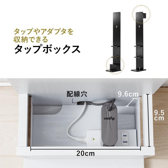 ●電源タップやアダプタを収納できるタップボックスを搭載しています。