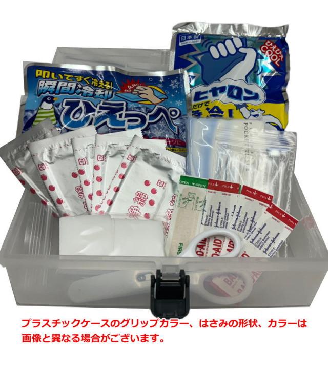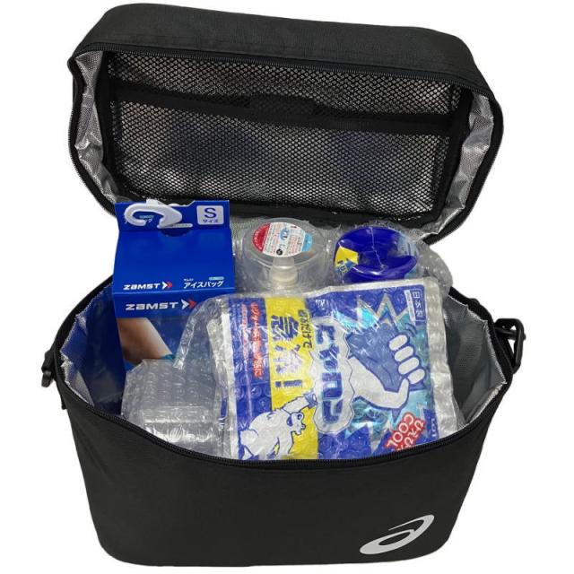 | 内容 | 保冷バッグ(asics)W29cm×H23cm×D18cm アイスバッグ(ZAMST)Sサイズ コールドスプレー(ムトー)500ml エアーサロンパス アイシングスプレー(Hisamitsu)490ml 固定用テーピング(ニトリート)指・手首用 25mm×12m ホワイト 固定用テーピング(ニトリート)足首・ひざ用 38mm×12m ホワイト 急速冷却パック (ヒヤロン)×1パック 急速冷却パック (ヒエッペ)×1パック 小物ケース 底面約16cm×8.3cm×高さ4cm(ハンドル付) バンドエイド 5枚 綿棒 6本 ポケットティッシュ 1個 脱脂綿 10枚 清浄綿 5枚 ハサミ 1個 (写真とは色・形が異なる場合がございます) |