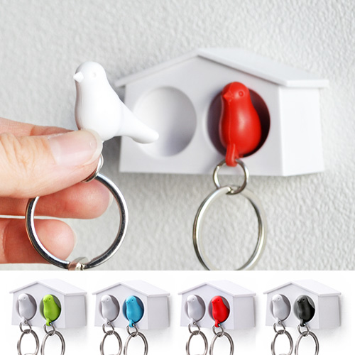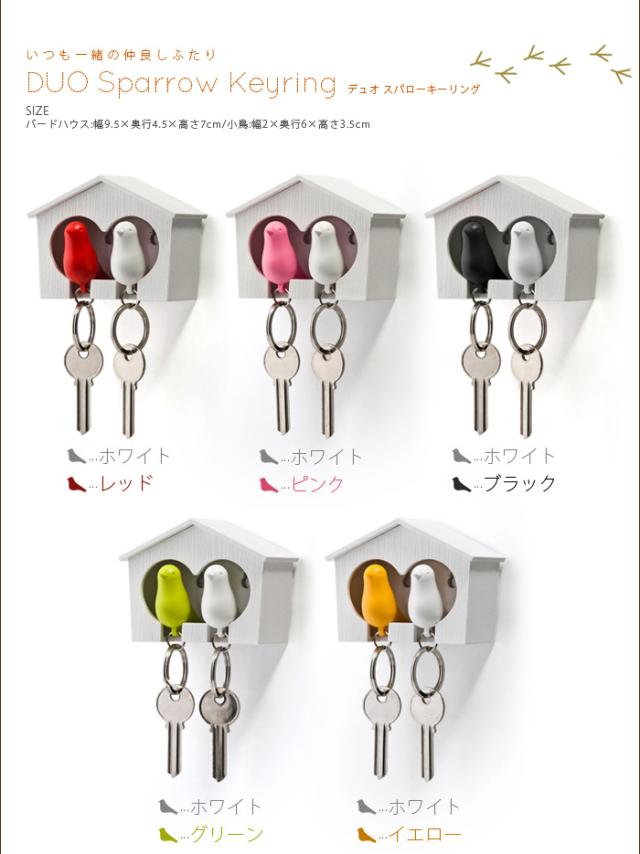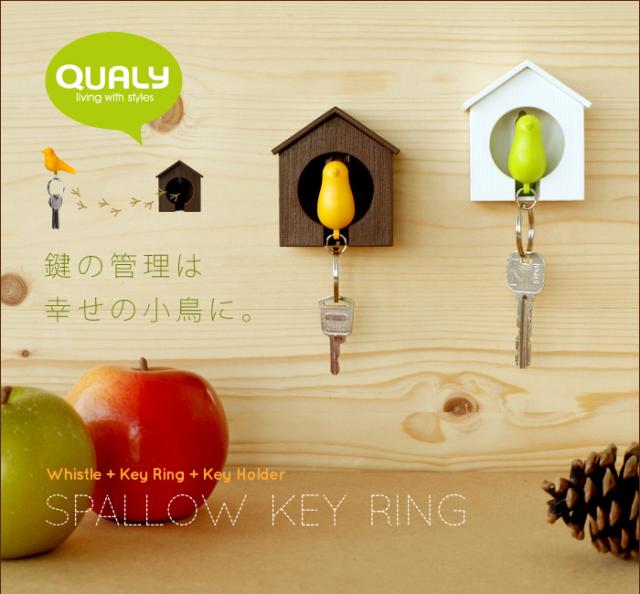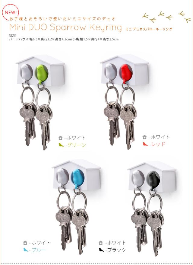 【12時迄のご注文は当日発送】 クオリー ミニ デュオ スパローキーリング ペアセット [Qualy 鍵 収納 キーホルダー 笛 ホイッスル 防犯]